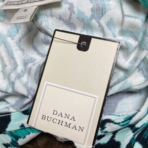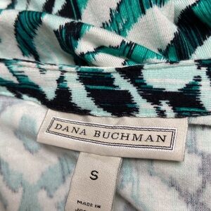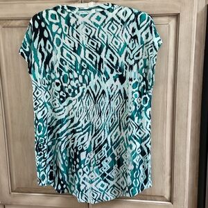 Dana Buchman top in green and black size small brand new with tags. This has short sleeves and a V-neck. It pulls on over the head.