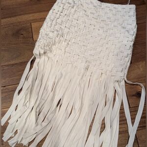 Beautiful Pinko skirt braided with fringes, new, never worn, white, size Medium.
