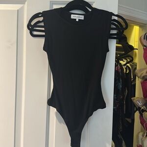 WEWOREWHAT Rib Jersey Scoop Neck Bodysuit Black Size S
