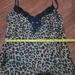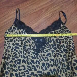 Victoria's Secret Vintage Leopard Print Silk Chemise Slip Black Lace Trim Women's Size Medium