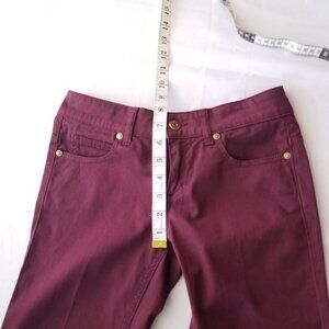 These House of Gucci pants are part of the 70s product line and come in a stunning maroon wine color with the iconic Gucci logo accents. They are designed with a slim fit and a low rise to provide a flattering look. The pants are available in size 28 with a waist size of 28 inches and an inseam of 28 inches. These chino-style denim style pants are perfect for any fashion-forward individual looking to add a touch of designer flair to their wardrobe.