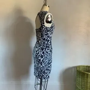 Snow Leopard Bodycon Open Back Sleeveless Stretch Shift Dress