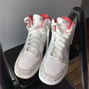 Women’s size 10 like new condition Nike Dunk High Skinny Sneakers in fun red orange and gray white animal print