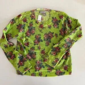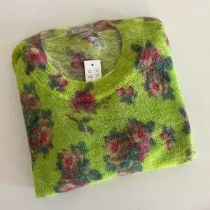 NWT J.Crew Brushed wool blend crewneck sweater / lemon rose garden