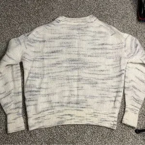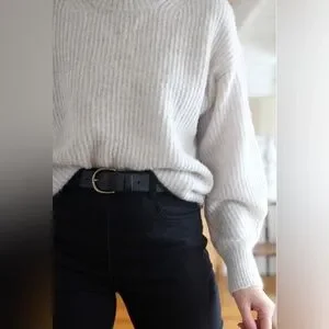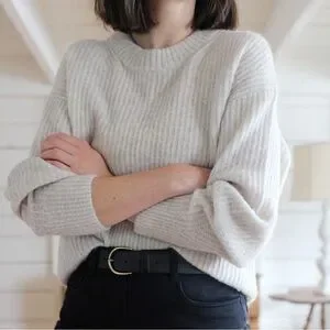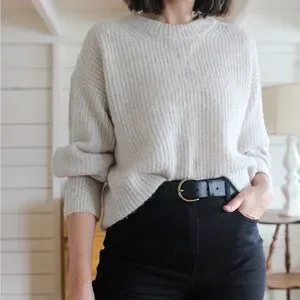 Oversized, as the name would indicate and it is relaxed and roomy (my preference for layering over a base tee) but since the knit is so lightweight it doesn't feel bulky or heavy and layers into all my winter coats with ease.