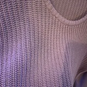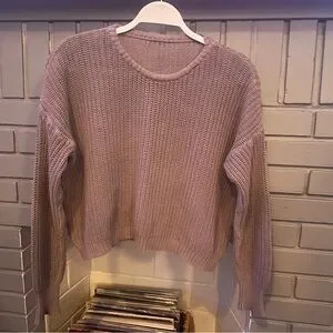 Super cute cropped sweater, there are some minor loose threads throughout, but overall fabric is in very good condition. Brand label tag removed from neckline for comfort. Best for size xs. Warm gray color.