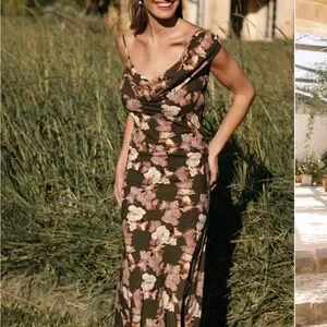 Elegant floral print dress in green, perfect for any occasion. Features a stylish draped neckline and a flattering fit.