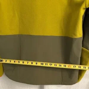 A brilliant outdoor pullover. Nice color-way, with bright orange highlights. One big center pocket with a small stash pocket on the side of it. Cozy, soft fleece throughout interior. See all pictures for measurements. Reasonable offers welcomed on already highly discounted price. Priced to sell.