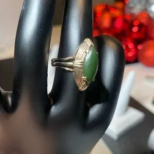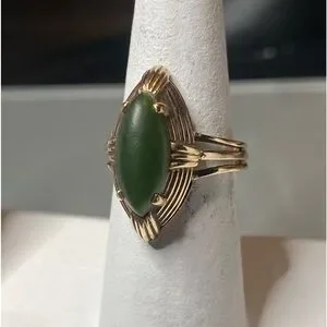 Vintage gorgeous natural Organic jade set in 10k gold. Size 7