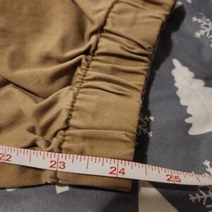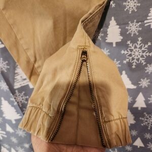 in excellent condition. Size 12 petite Chino joggers. bottom of legs have zipper. waiste is 15 1/2 inches, and the length is 24 inches. in tan.