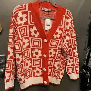 Zara Boho KNIT JACQUARD FLOWER CARDIGAN