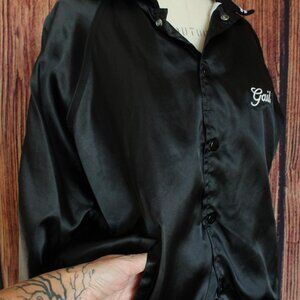 Vintage 1970s 1980s Men's Jacket, Black Satin Rennoe Vineland NJ Fishing Team