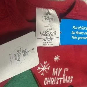 Perfect gift for any baby for their 1st Christmas!! Brand new with tags. Disney Baby: My First Christmas baby onesie! Size 3-6 months! So cute and festive! Cozy with long sleeves and long pants onesie. Easy to take off and on baby with the buttons. Perfect for a boy or girl baby as Mickey and Minnie Mouse are on the outfit! Merry Christmas!!