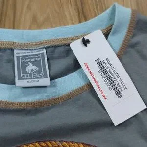 Women's NWT National Finals Rodeo Mojave long sleeve tee in gray, terra cotta and blue. Semi fitted.