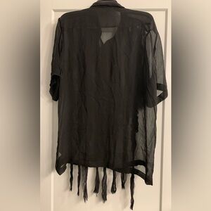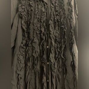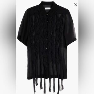 Brand new with tags Dries Van Noten Clasan Ruffle Front Viscose Chiffon Shirt in color Black, size US 10 FR42