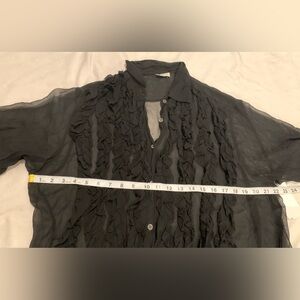 Dries Van Noten Clasan Ruffle Front Viscose Chiffon Shirt Black size US 10 FR42