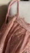 Absolutely gorgeous lace over lay dress in dusty blush. Cold shoulder with self tie cami straps. 3/4 sleeves. Dress is lined except for sleeves. Keyhole Back button closure. Crochet trim. Perfect for weddings or special occasions.