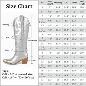 *Classic Design: The silver mid calf cowboy boots for women are designed with classic embroidery, rubber sole and mesh fabric lining.