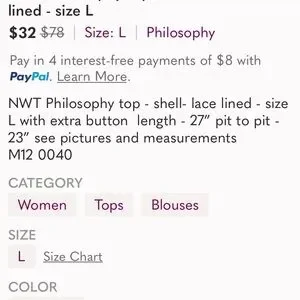 New with Tag Philosophy Top Size Large. Bert's Cute see all Photos.