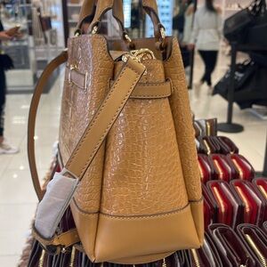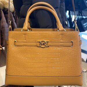 MICHAEL KORS Reed Lg Leather Belted Satchel Crossbody Handbag CZ Deer Crocodile