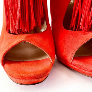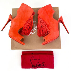 CHRISTIAN LOUBOUTIN || Fringe Peep Tassel Heels Otoka 120 Coral Suede US 7.5