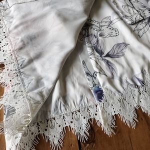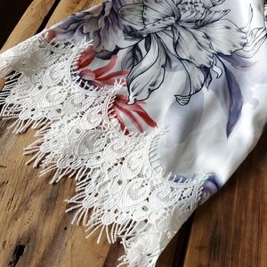 LE ROSE Floral satin Fleur Lace Trim Robe