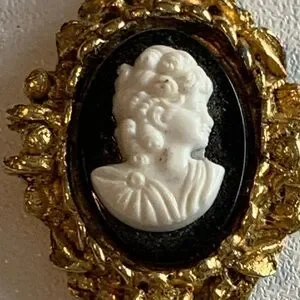 Elegant Vintage Gold and Black Cameo Collar Brooch