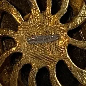This elegant gold and black cameo brooch is a timeless piece of jewelry that adds a touch of history to any outfit. Perfect for special occasions or everyday wear. Minor condition issues commensurate with age. Pin latch works.