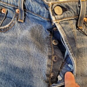 Distressed destroyed style, rigid denim, 99% cotton, no stretch
