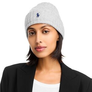 POLO Ralph Lauren Wool Cuffed Ribbed Beanie Cap NWT Grey