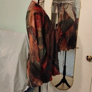 Women's Zara NWOT pleated green/orange/gold wrap top Sz Small