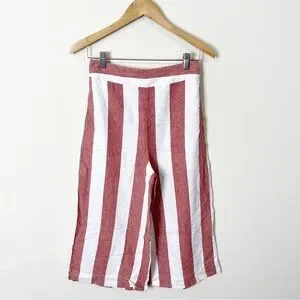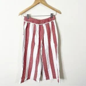 Madewell Linen Huston Pull-On Crop Pants in Bold Stripe Size Small