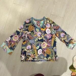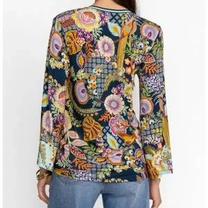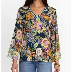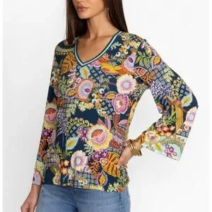 Featuring a lively kaleidoscope of color, the Wild Bird V-Neck Kimono Sleeve Tee is an elevated take on a traditional tee. Featuring an open V-neckline and generous bodice, this tee is finished with flowing kimono sleeves for the perfect combinations of style and comfort. Pair with relaxed joggers and sandals for a casual outing with friends.