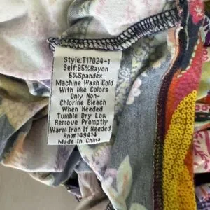 Care Instructions: Machine wash cold. Only non-chlorine bleach when needed. Tumble dry low. Warm iron.