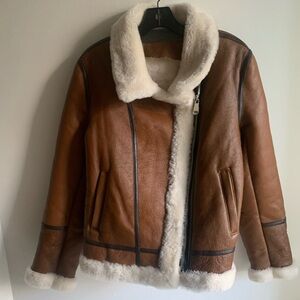 Genuine Leather and Shearling Jacket - Brown Leather - Size L - NWoT! *RARE*
