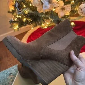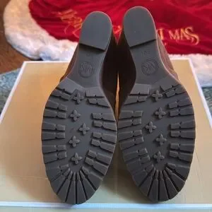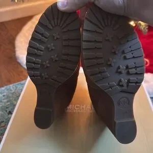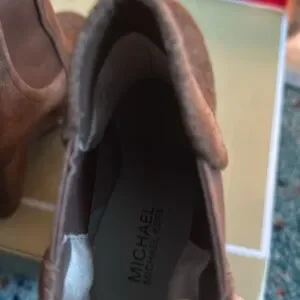 Michael Kors suede boots size 8.5 Brown worn one time. The pictures make them look like there are darker spots, but it’s just the lighting. They are in excellent condition. I wore them once. I wear a 9 and didn’t realize they were an 8.5.