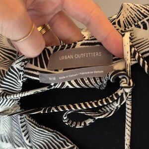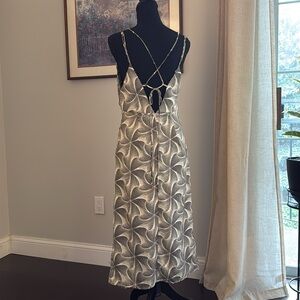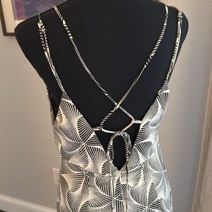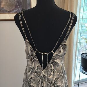 Slip dress made from a lightweight fabrication designed with an all-over back & white print motif.