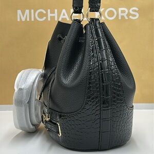 MICHAEL KORS Reed Medium Pebbled Leather Belted Bucket Messenger Satchel Crossb