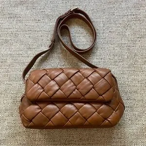 DUNE LONDON Woven Brown Leather Crossbody Bag