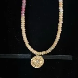 Beautiful necklace with coin and crystals