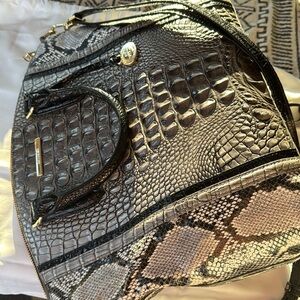 This gorgeous bag is in excellent condition, it is a rich black and silver embossed snake skin.