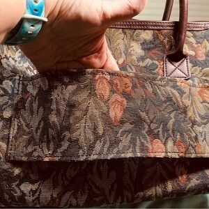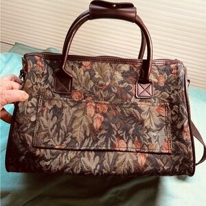 Vintage - Atlantic Travel Bag, Brown, Green & Dusty Rose TapestryZip, Pickets inside/outside, leather handles & shoulder strap. Excellent Condition - Like New! 1 owner, smoke free home. Bundle with any other $15 item and get both for $16!