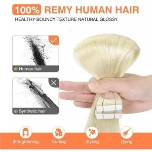 20pcs 50g 16 Inch Platinum Blonde Remy Human Hair,Straight Seamless Tape Ins
