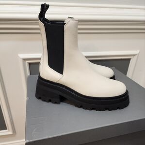 - Women’s patent leather chelsea boots in Ice ecru smooth leather