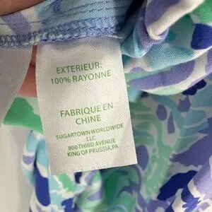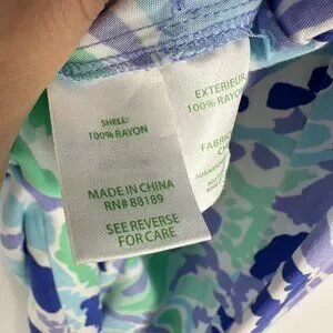This elegant strapless jumpsuit by Lilly Pulitzer features a vibrant blue, purple and green abstract print. Made from 100% rayon, it offers a flowy, breathable fit. Designed for sophisticated style, the jumpsuit is an ideal choice for resort wear or casual outings, accentuating a trendy and polished look.