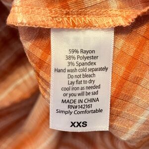 Beautiful and soft Rust color dress with drop hem. You will be delighted with how comfortable this dress is. Pretty enough to dress up or go with a more relaxed look.