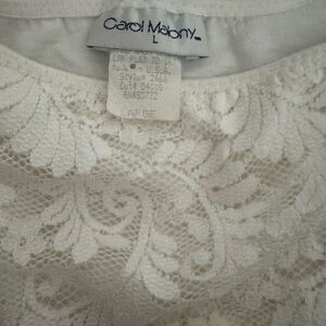 Only tried on and in great condition, just missing tags. Vintage Carol Malony Ivory Lace Short-Sleeved Thong Bodysuit- Size Large.