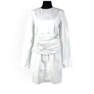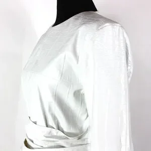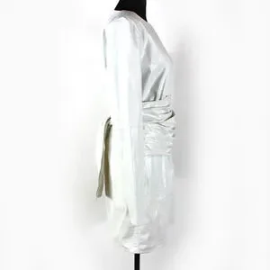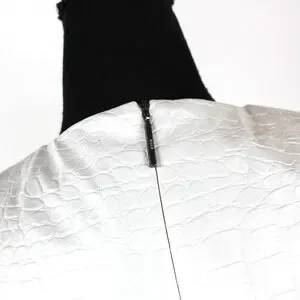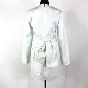 MSGM Abito Faux Leather Dress NEW Croc Embossed Tie Sash Belted White Mini Sz M