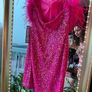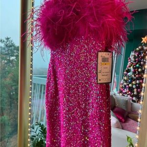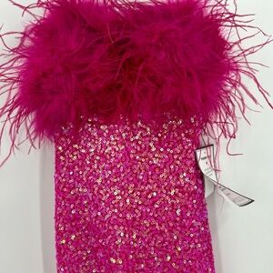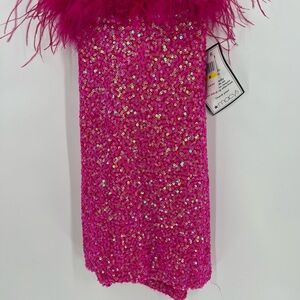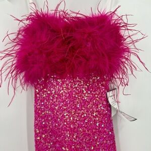 B DARLIN Feathered & Sequined Bodycon Dress Medium