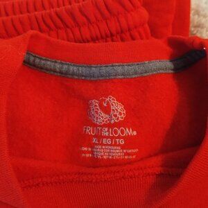 EUC - Fruit of the Loom sweatshirt & pants set in True Red. Features brands Eversoft fabric, tag free and elastic quick cord for adjustable waist. Men's size XL/ Women's XXL, 60% Cotton 40% Polyester. Like new condition, only worn & laundered once (cold wash & hung to dry). No stains, rips or tears. Smoke and Pet free home.